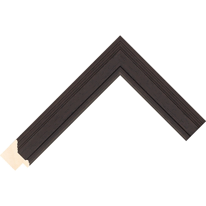 A 30mm wide scoop profile, with a total depth of 25mm, finished in a mahogany stain with the wood grain visible.