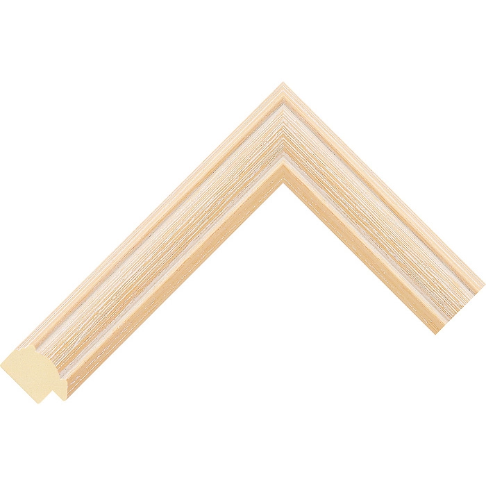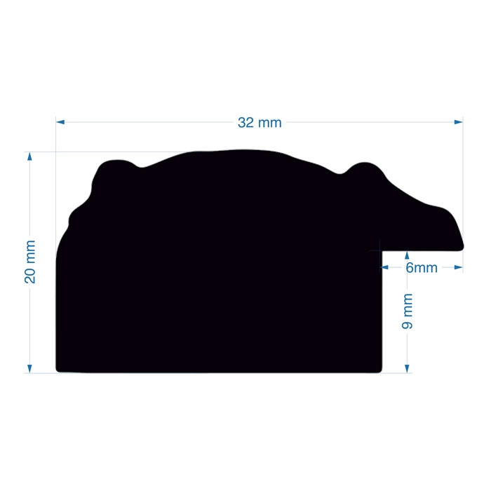 A 32mm wide cushion profile with a total depth of 20mm. Finished in a white wash with tan shades showing through.