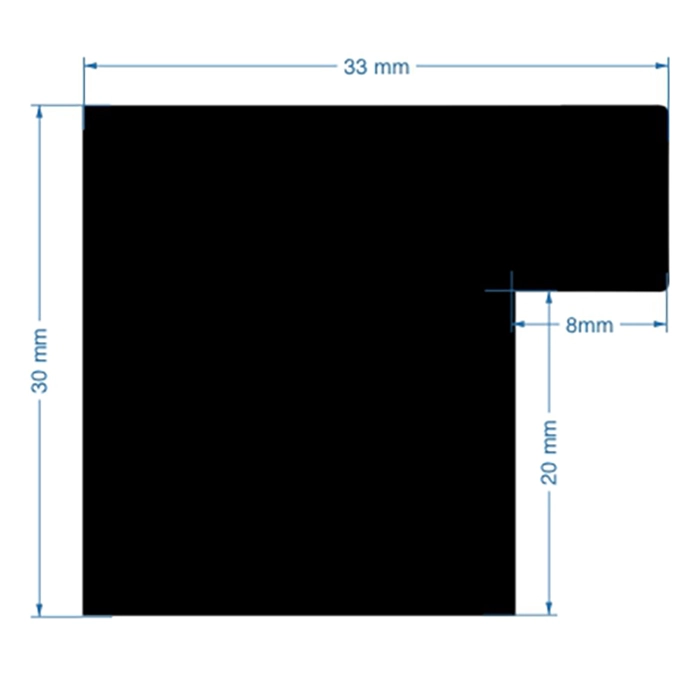 A 33mm wide square profile, with a total depth of 30mm, that has a white lacquer coating that creates gloss finish. The box frame comes complete with an internal spacer between the clear acrylic glazing and MDF backing board so a 3d object can be framed.