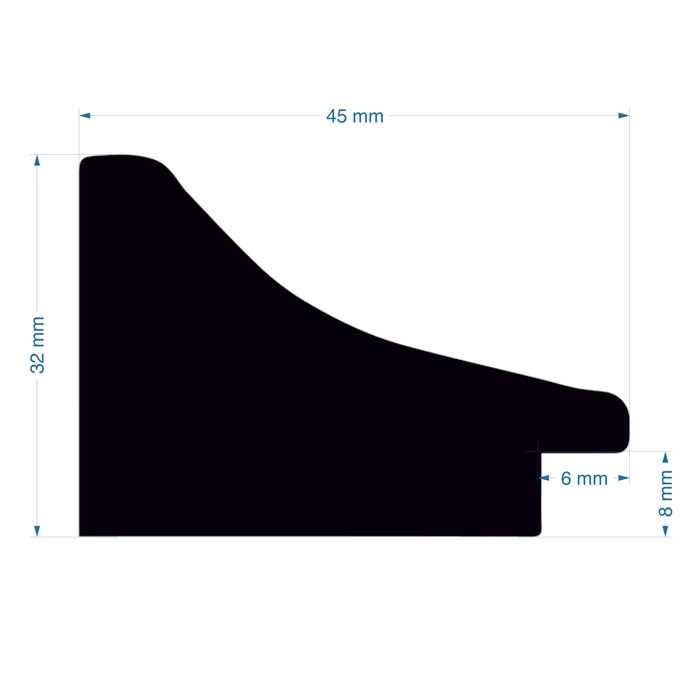 A 45mm wide spoon profile, with a total depth of 32mm, that is finished with a solid matt black paint.