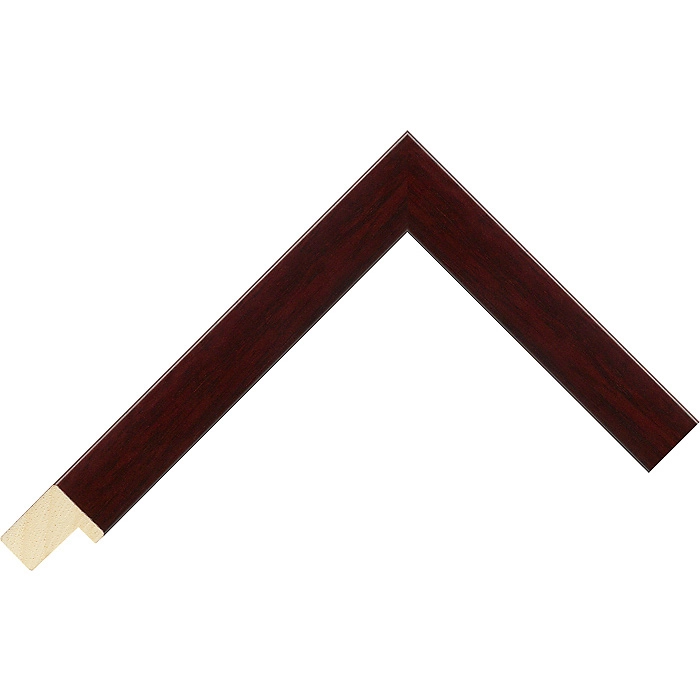 A 20mm wide flat profile, with a total depth of 23mm, finished in a mahogany coloured stain. The box frame comes complete with an internal spacer between the clear acrylic glazing and MDF backing board so a 3d object can be framed.