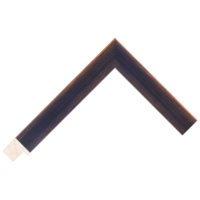 A 22mm wide Radiata Pine Wood picture frame with a total depth of 22mm, and finished in Black/Orange Foil.