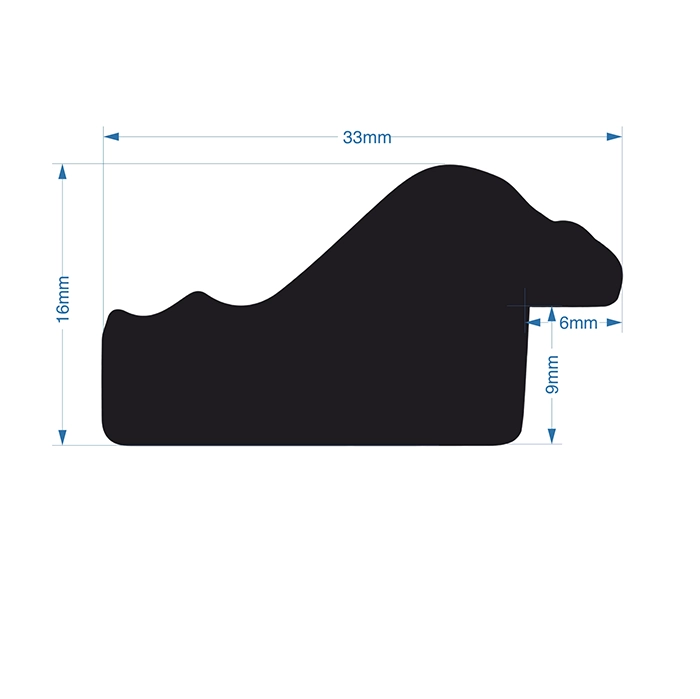 A 33mm wide reverse profile, with a total depth of 16mm, that is finished with a walnut stain.