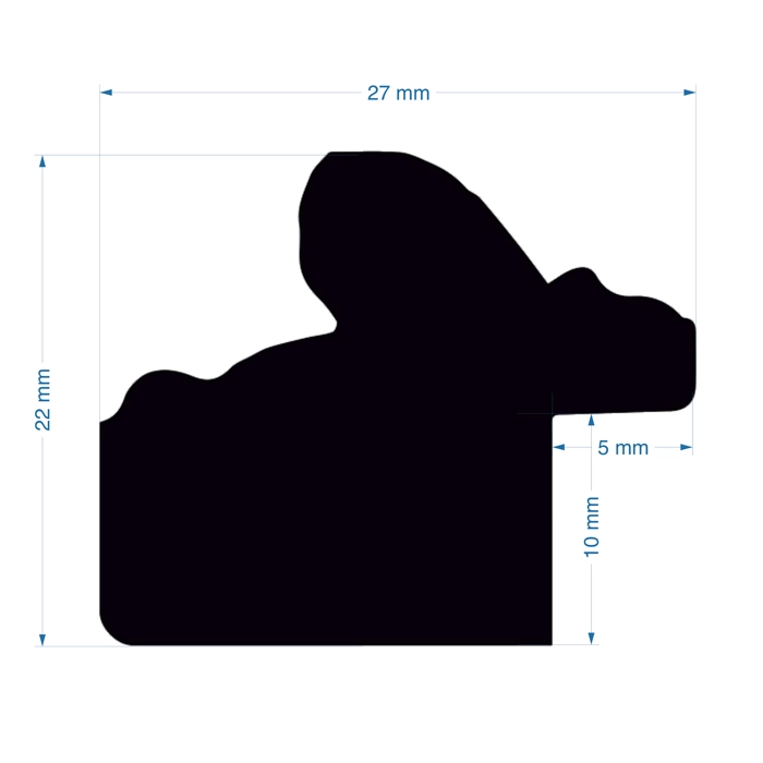 A 27mm wide spoon profile, with a total depth of 22mm, that is finished with a mahogany stain and a sight gold edge.