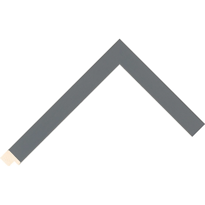 An 18mm wide flat profile, with a total depth of 13mm, that has a dark grey stain finish with the wood grain showing through.