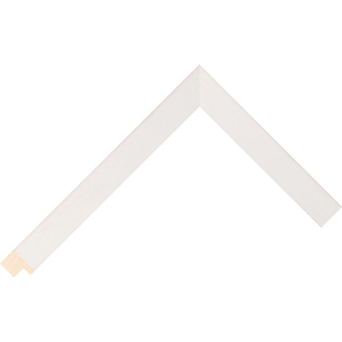 An 18mm wide flat profile, with a total depth of 13mm, that has a white stain finish with the wood grain showing through.