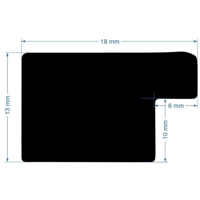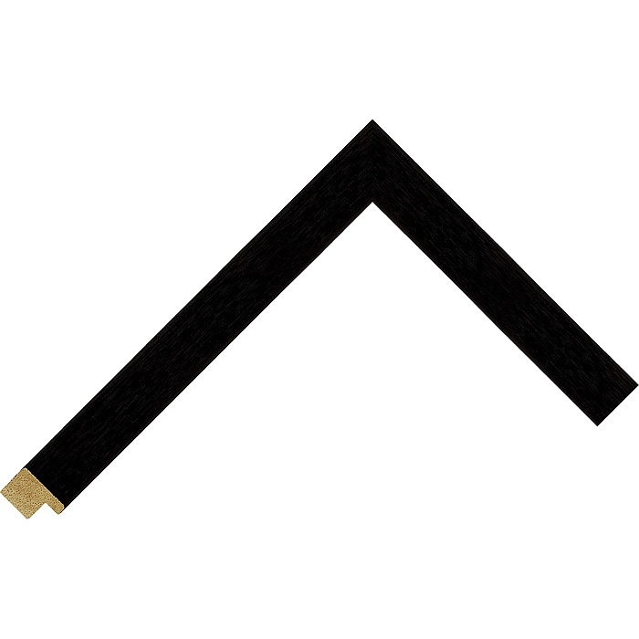 An 18mm wide flat profile, with a total depth of 13mm, that has a black stain finish with the wood grain showing through.