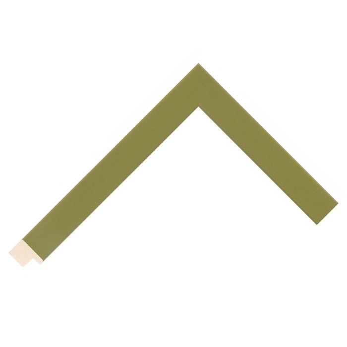A 20mm wide flat profile, with a total depth of 13mm, that has a green stain finish with the wood grain showing through.