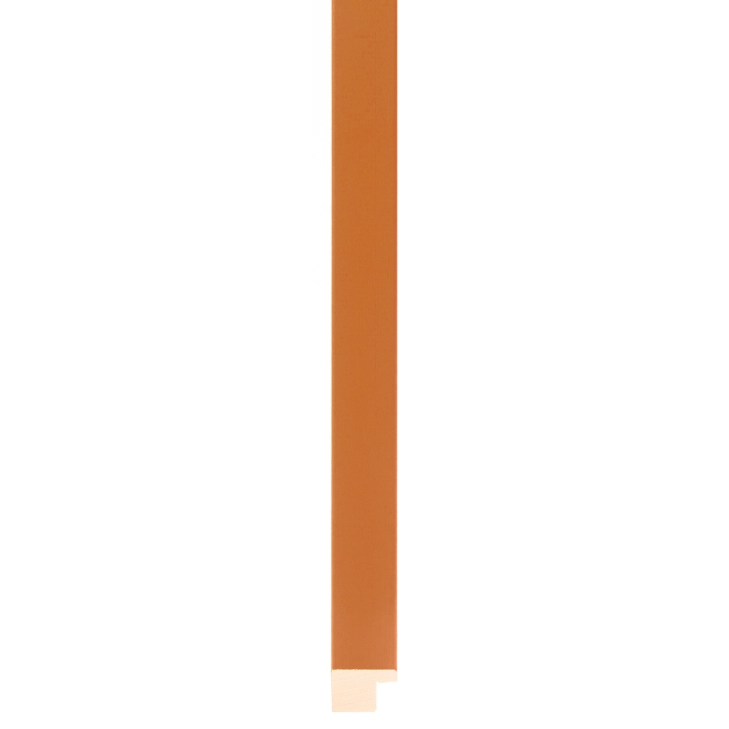 A 20mm wide flat profile, with a total depth of 13mm, that has a Orange stain finish with the wood grain showing through.