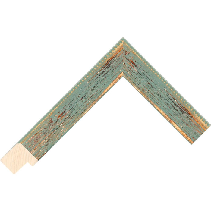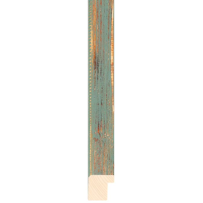 A 27mm wide flat profile, with a total depth of 27mm, that is finished in a rustic/distressed stripped green paint. Part of the Riviera Moulding Range.