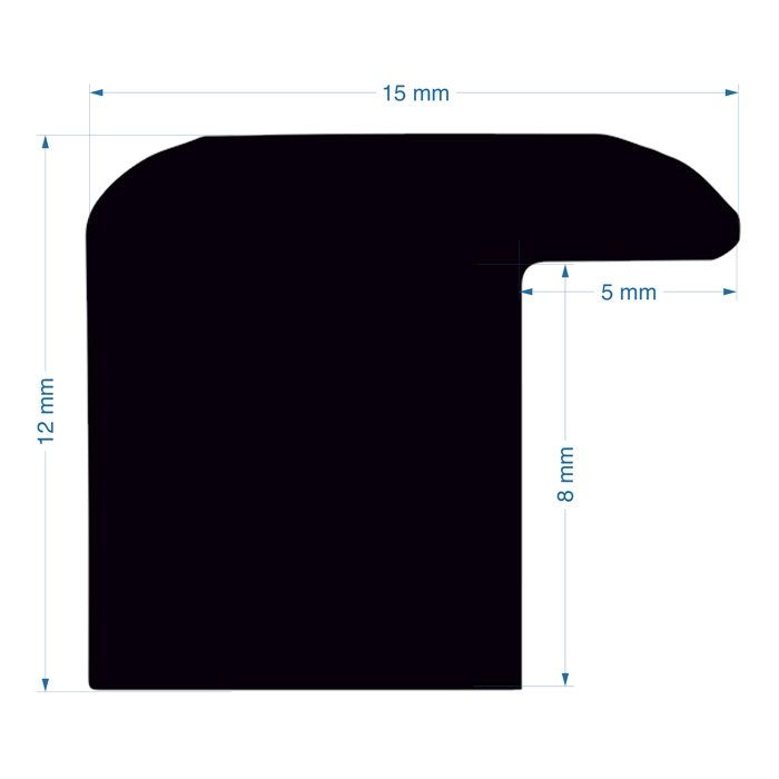 A 15mm wide cushion profile, with a total depth of 13mm, that is finished with a solid matt black paint.