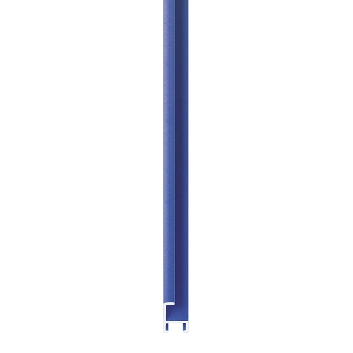 A 7mm wide flat profile, with a total depth of 21mm. Blue powder coated aluminium, finished with matching side. This innovative surface is not only subtly textured, but super hard wearing. We drew on the latest technologies in product finishing to achieve a great range of powder coated colours.