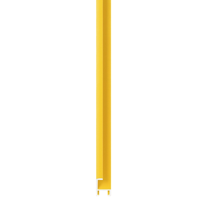 A 7mm wide flat profile, with a total depth of 21mm. Yellow powder coated aluminium, finished with matching side. This innovative surface is not only subtly textured, but super hard wearing. We drew on the latest technologies in product finishing to achieve a great range of powder coated colours.
