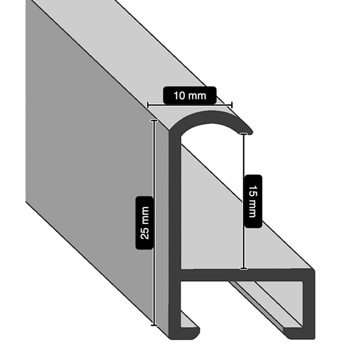 A 10mm wide Aluminium frame with a total depth of 25mm, and finished in Oak Veneer.