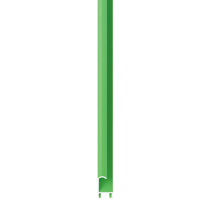 A 10mm wide rounded profile, with a total depth of 25mm. Green powder coated aluminium, finished with matching side. This innovative surface is not only subtly textured, but super hard wearing. We drew on the latest technologies in product finishing to achieve a great range of powder coated colours.