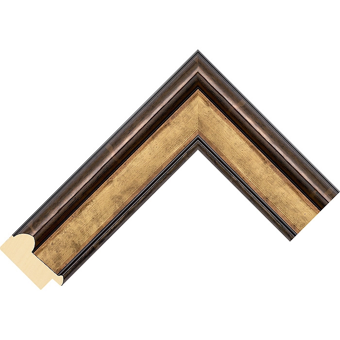 A 45mm wide Radiata Pine Wood frame with a total depth of 23mm, and finished in Gold/Pewter Foil/Spray.