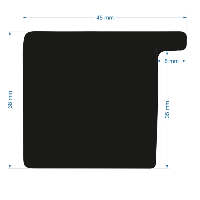 A 45mm wide square profile with a total depth of 38mm. Finished in a metallic bronze paint with slight pitted effect.