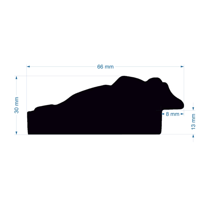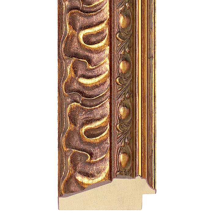 A 66mm wide reverse profile, with a total depth of 30mm. Finished in a bronze/gold foil with decorative carvings.