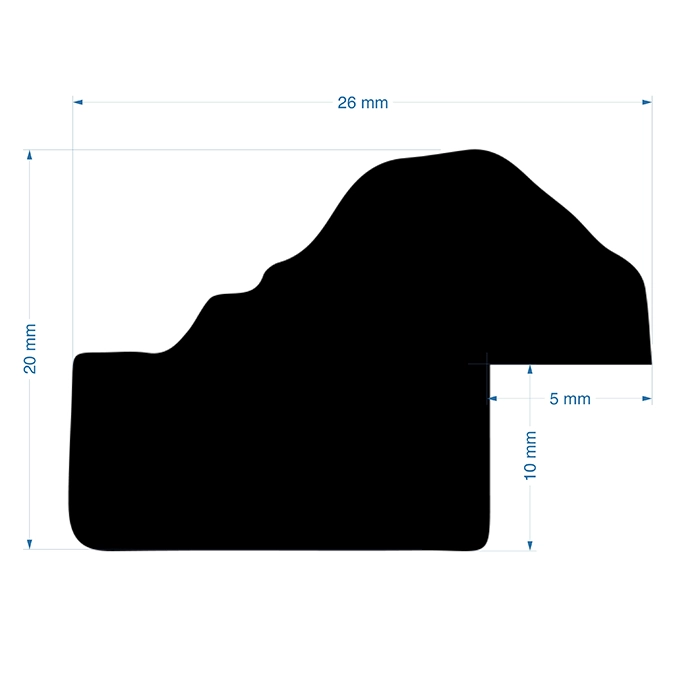 A 26mm wide reverse profile, with a total depth of 20mm, that is finished in gold leaf with decorative/beaded edging.