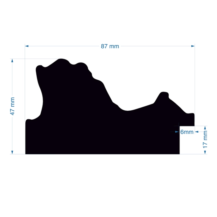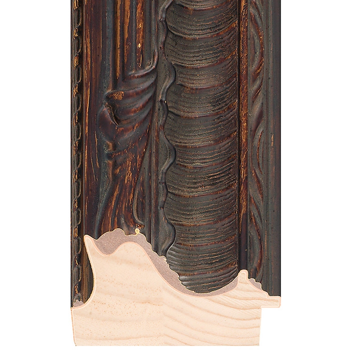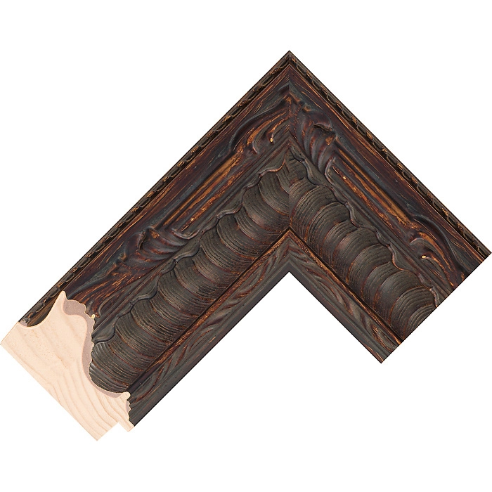 A 87mm wide scoop profile with a total depth of 47mm. Decorative carved style finished in a predominantly brown paint with bronze showing through.