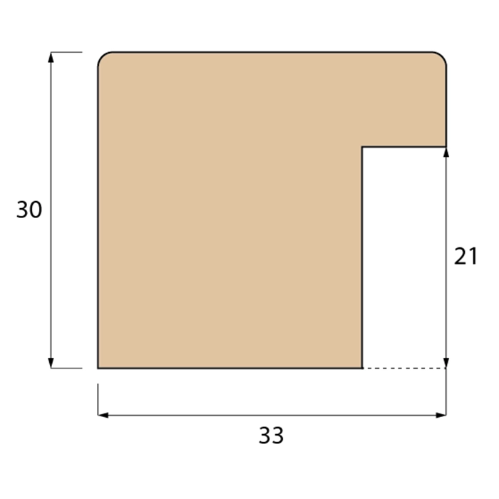 A 33mm wide Obeche Wood frame with a total depth of 30mm, and finished in Grey Foil.