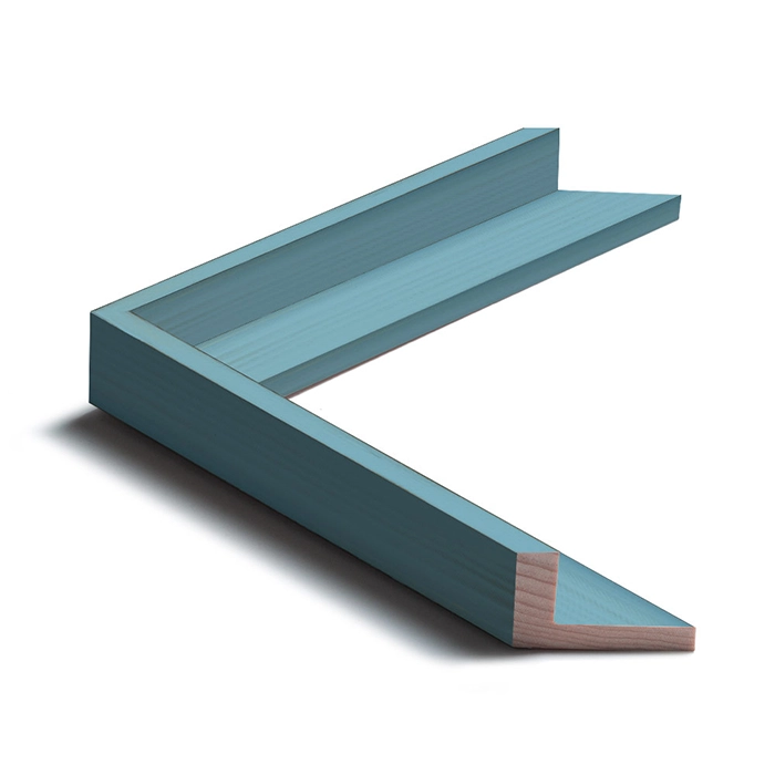 A 9mm wide Pine Wood frame with a total depth of 35mm, and finished in Blue Wrapped.