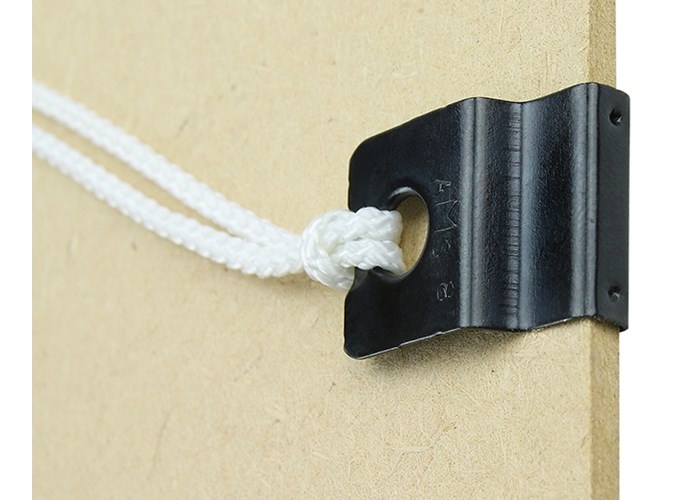 Neat little hanger which slips over the edge of the backing board before you put it in the frame. Easy to fit picture cord or wire and the round hole with 'extruded' rim minimises risk of failure by chafing. For boards up to 3.0mm thick.